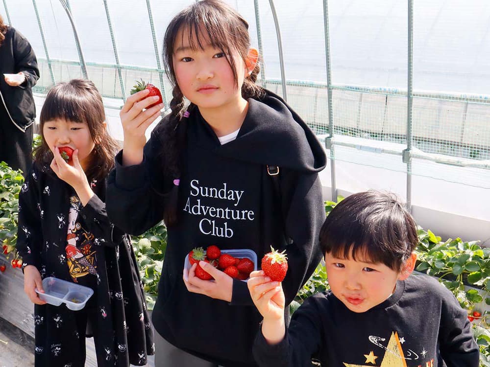 美味しい苺はみんなを笑顔にします。苺狩りは家族や親しい仲間との楽しい思い出。お子様にとっては一生の思い出になるかもしれません。苺狩りをした事が無い方は、お客様の笑顔をご覧になってください。そして一緒にハッピーになりましょう!