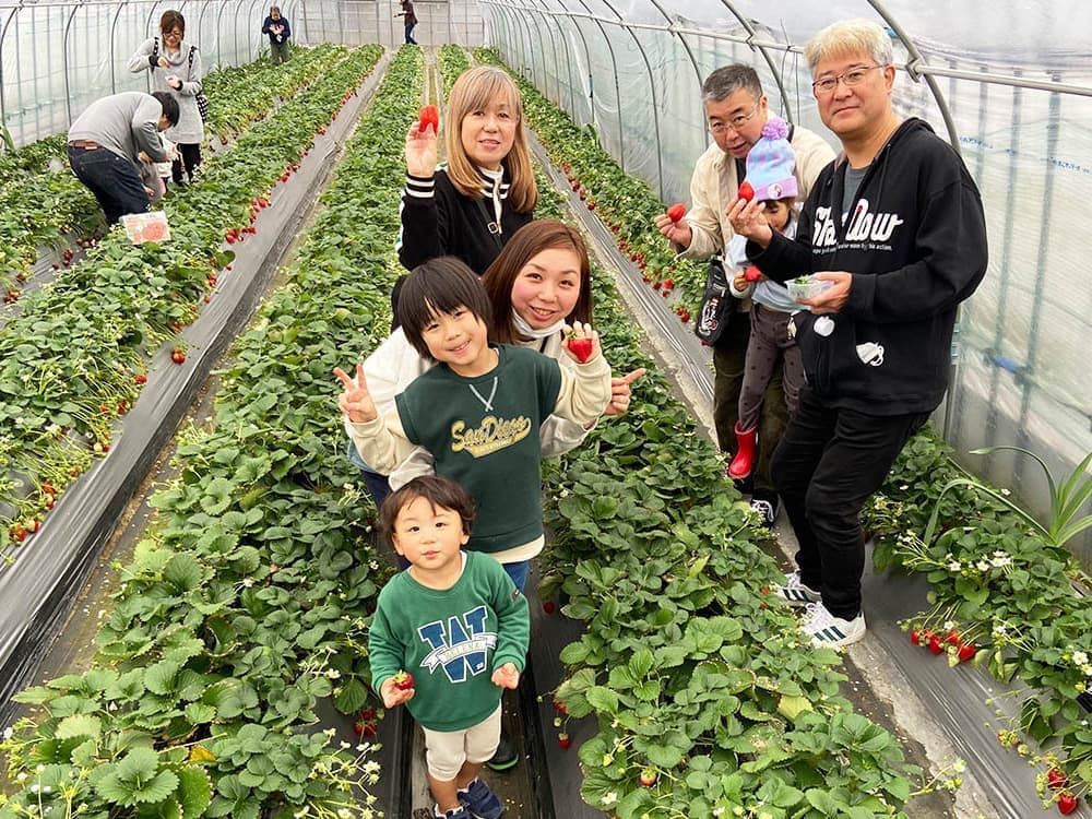 美味しい苺はみんなを笑顔にします。苺狩りは家族や親しい仲間との楽しい思い出。お子様にとっては一生の思い出になるかもしれません。苺狩りをした事が無い方は、お客様の笑顔をご覧になってください。そして一緒にハッピーになりましょう!